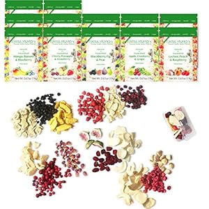 🍓 12 LARGE SNACK BAGS TO GO, PACKED WITH LOTS OF NUTRIENTS: Equivalent to as much as 5 lbs (2.2 kg) of fresh fruits will last you a long time. Easy tear-opening on the box and on each bag. Comes out to just about $3 for one very large to-go bag of delicious and healthy snack: it’s cheaper than the vending machine for a not-so-healthy alternative.