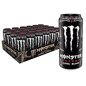 Monster Energy Ultra Black, Sugar Free Energy Drink, 16 Ounce (Pack of 24)