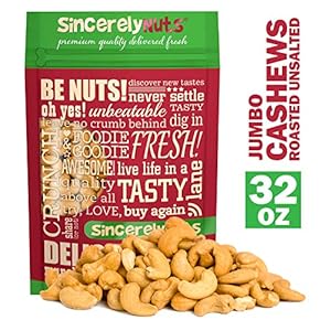 NUTSSincerely Nuts – Large Jumbo Cashews Roasted and Unsalted | Two Lb. Bag | Deluxe Kosher Snack Food | Healthy Source of…
