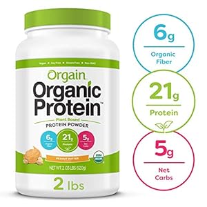 Orgain Organic Vegan Protein Powder, Peanut Butter – 21g of Plant Based Protein, Low Net Carbs, Non Dairy, Gluten Free…