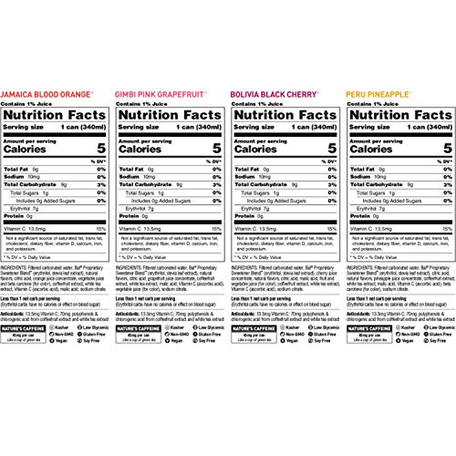 SPARKLING WATER DRINKS – 3 cans each of Bolivia Black Cherry, Gimbi Pink Grapefruit, Jamaica Blood Orange, Peru Pineapple