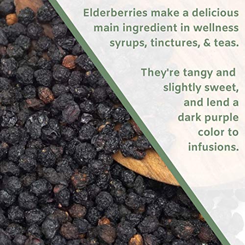 ✔ ORGANIC ELDERBERRIES MAKE PERFECT ELDERBERRY SYRUP: Organic dried elderberries make a wonderful wellness syrup during cold and flu season. Dried elderberries organic bulk also make excellent teas, wines, and jams/jellies.