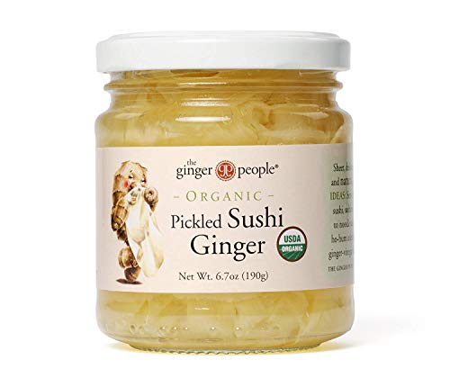 Discriminating sushi chefs will tell you that this is the purest sushi ginger around. It contains none of those nasty artificial dyes, sweeteners or preservatives. And that’s not even the best part. Now, it’s organic Available in small jars for the home chef and in larger pack sizes for sushi bars and restaurants. For salads, sushi, and gourmet sandwiches. As a garnish, use it along with a dab of wasabi on grilled ahi tuna.Gluten Free.All Natural.USDA Organic.One ounce contains 20 calories, 0g fat, 5g carbs.4 pack / 6.7oz per jarProduct of ChinaThe Ginger People Ingredients: Organic ginger, organic cane sugar, rice vinegar, citric acid.