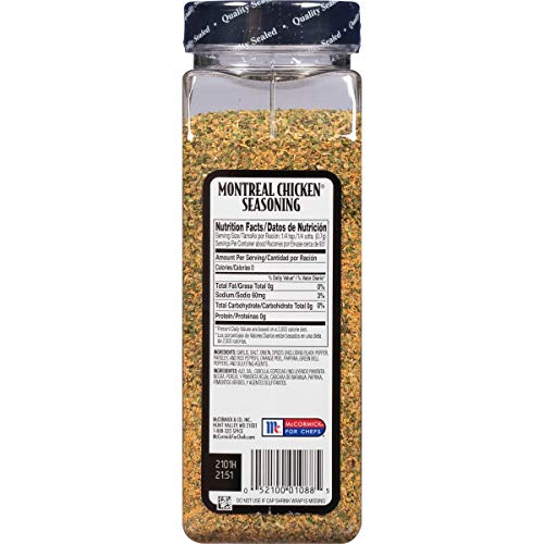 McCormick Grill Mates Montreal Chicken Seasoning brings layers of bold flavor to grilled dishes. Bump up chicken, seafood or veggies with a savory blend of all-natural herbs and spices, featuring garlic, salt, onion, orange peel, paprika and green bell pepper. Sprinkle, rub, or bag and shake to find the perfect seasoning balance. These flavors go great on meat or veggies, so try combining the two for a killer kebob. Dinner tastes better when it’s made easy and served fresh from the grill.