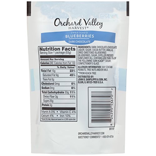 Contains 14 – 1.9 ounce packs of dark chocolate dipped blueberries