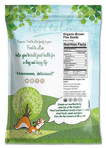 Organic Brown Flax Seeds, 5 Pounds – Whole Raw Flaxseeds, Non-GMO, Unroasted, Dried, Kosher, Vegan, Bulk. Rich in Omega…