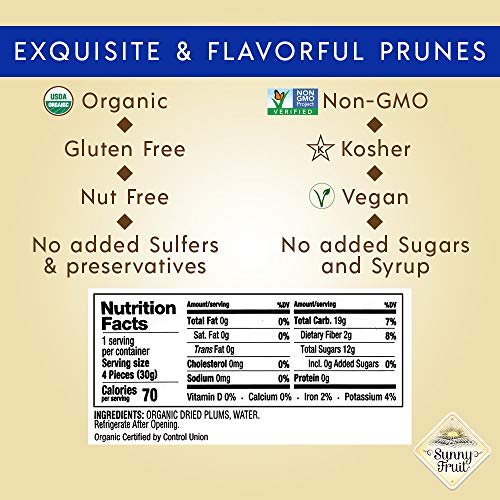 ORGANIC Prunes – Sunny Fruit – (5) 1.06oz Portion Packs per Bag | Purely Dried Plums – NO Added Sugars, Sulfurs or…