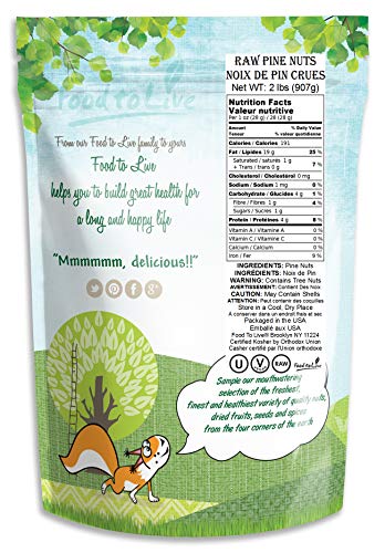 Pine Nuts, 2 Pounds – Non-GMO Verified, Whole Raw Pignolias (Pinion), Unsalted, Vegan, Kosher, Bulk. Rich in Vitamin E…