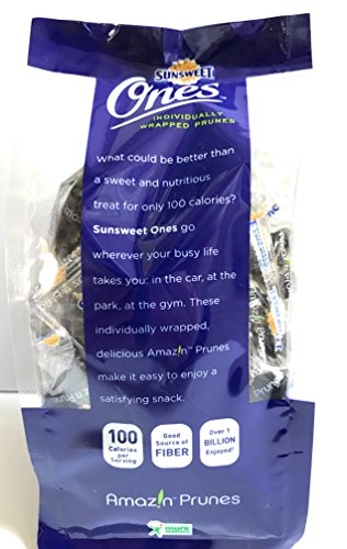 Individually wrapped and delicious, Sunsweet Prunes are moist, juicy and full of nutritious goodness. Pop a few into your car, purse, or lunch. Your taste buds and body will thank you. Bite for bite better than fresh fruit. That’s right, just one bite of a Sunsweet dried plum delivers more nutrition than any bite of fresh fruit. So move over fresh fruit while the once humble prune takes its place as nature’s ultimate convenient and nutrient-packed snack. We select our very best quality, succulent California plums for our individually wrapped Sunsweet ones. When you need energy, antioxidants, potassium, fiber, or just an irresistibly delicious snack you can take anywhere…reach for Sunsweet ones. You get 2 12 oz packages for a total of 24 ounces in this multi-pack deal. Great value! Order yours today and thanks for shopping!