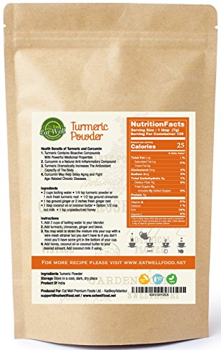 Raw Turmeric Curcumin Curcuma Longa Powder | 16 oz (453 gr) Reseable Bag, Bulk | Organic Spices | Non-GMO | 100% Natural | by Eat Well Premium Food