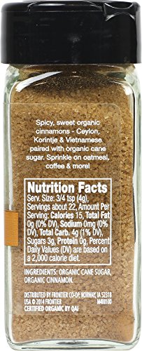 Ceylon, Korintje and Vietnamese cinnamon paired with organic cane sugar.