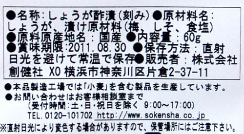 Ingredients: ginger (Kochi), marinated raw materi