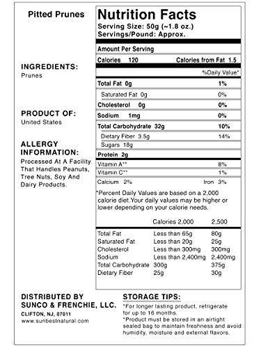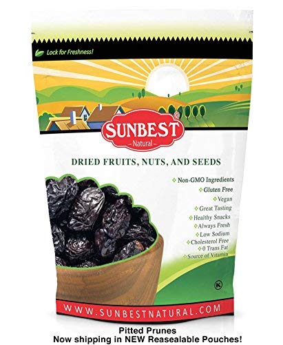 SUNBEST JUMBO Pitted Prunes, Dried Plum, Unsulphured in Resealable Bag