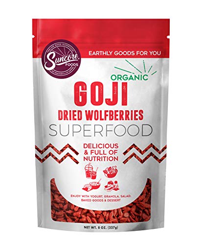 Suncore Foods Organic Dried Goji Berries, Gluten-Free, Non-GMO, 8oz (1 Pack)