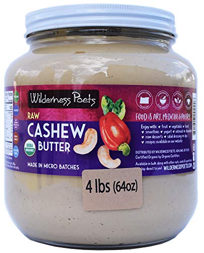 Wilderness Poets, Organic Cashew Butter – Raw, Vegan, Paleo, No Added Sugar – Half Gallon Glass Jar, 4 Pound (64 Ounce)